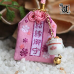 - Rosa (結縁御守 / Musubi-en Omamori): Este modelo está diseñado para atraer amor y conexiones significativas. El kanji 結縁 (Musubi-en) significa «formar lazos» o «unión,» representando relaciones afectivas duraderas y armoniosas. Ideal para quienes buscan fortalecer sus lazos emocionales o encontrar el amor verdadero.