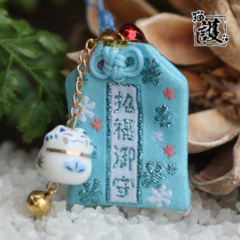 - Azul (招福御守 / Shōfuku Omamori): : Este amuleto tiene como objetivo atraer felicidad y buena suerte. El kanji 招福 (Shōfuku) significa «invitar la fortuna,» evocando prosperidad y momentos de alegría. Perfecto para quienes desean un año lleno de energía positiva y éxito.