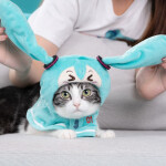 Convierte a tu mascota en una estrella de Vocaloid con esta capucha y pequeña capa inspirada en Hatsune Miku. Diseñada por la marca Moeyu, este accesorio captura el icónico cabello azul con coletas de Miku, brindando un toque único y adorable a tu gato o perro de tamaño mediano o pequeño. Fabricada con tela de felpa de cristal supersuave, garantiza comodidad mientras hace que tu mascota luzca como todo un idol.