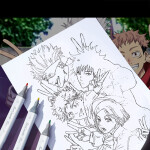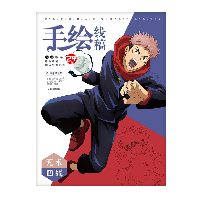 Colección de láminas de Jujutsu Kaisen para pintar: 24 bocetos para pintar + 24 imágenes a color