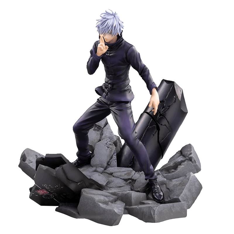 • Representación dinámica: Satoru Gojo se muestra en una poderosa postura de lucha, capturando su técnica Unlimited Void.