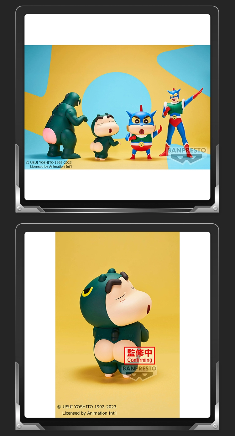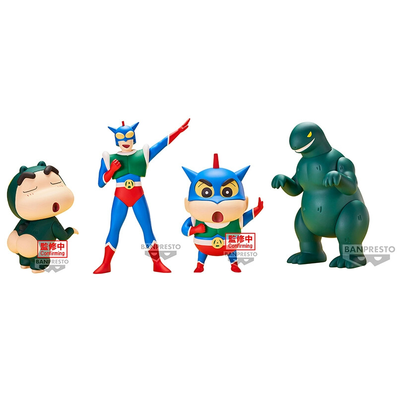 - Diseño detallado: La figura presenta a Shinchan junto a Ultrahéroe (Action Kamen) y Kaiju Shirimarudashi en una escena divertida y llena de humor. Desde las expresiones faciales hasta los detalles de los trajes y accesorios, cada aspecto está cuidadosamente diseñado para capturar la esencia única de los personajes del anime.
