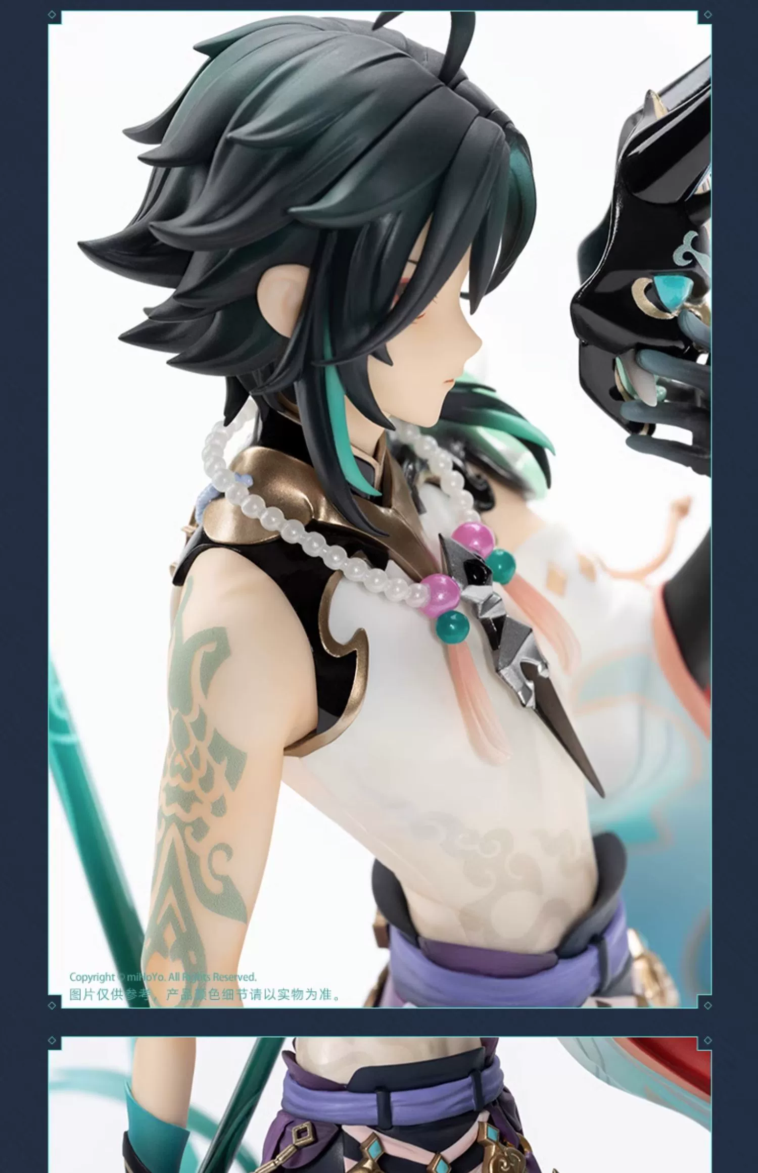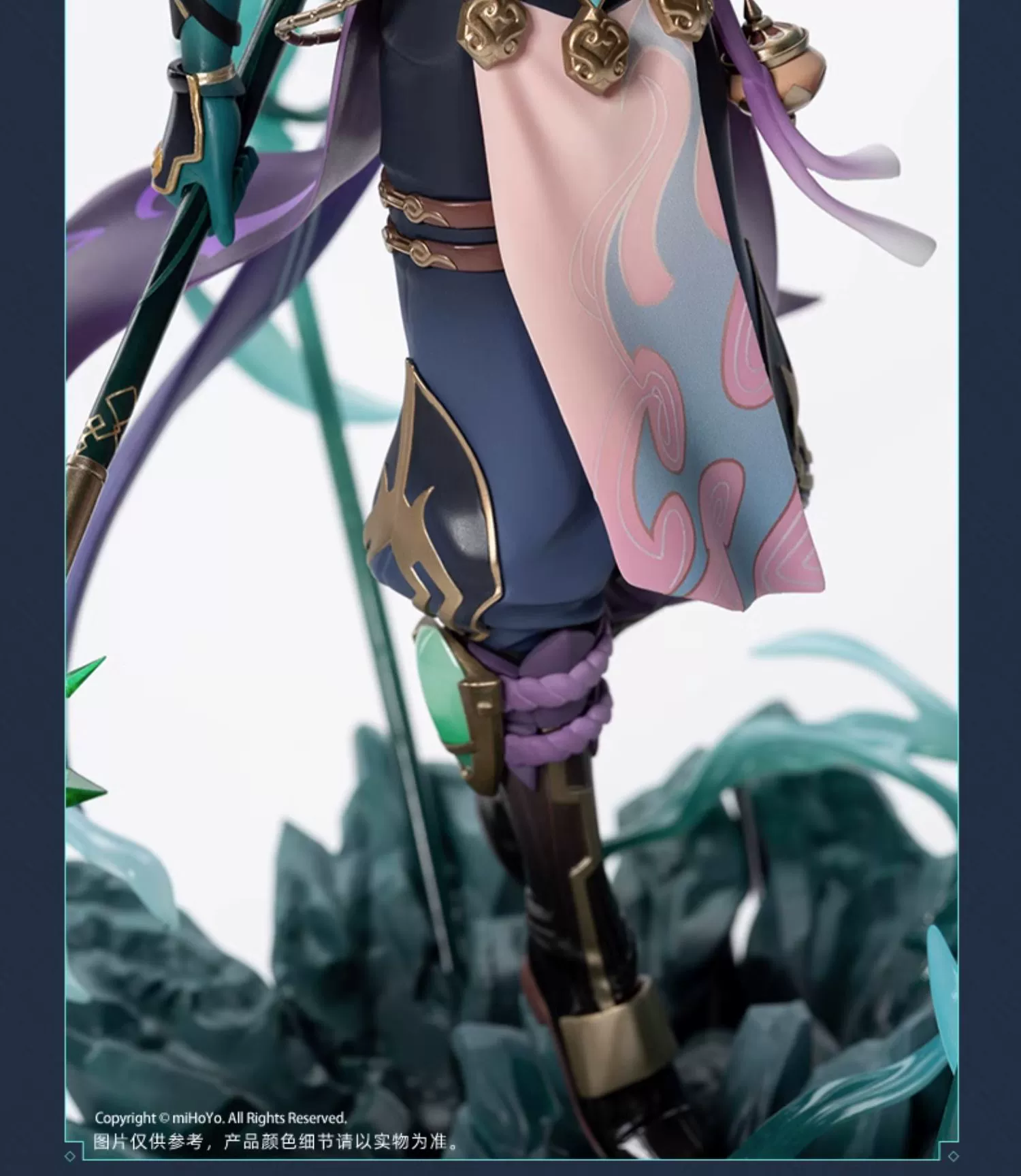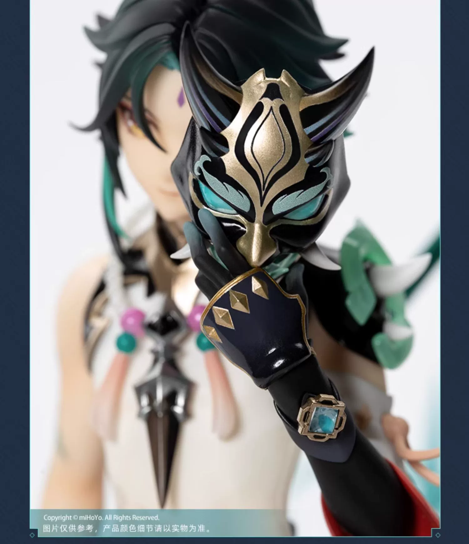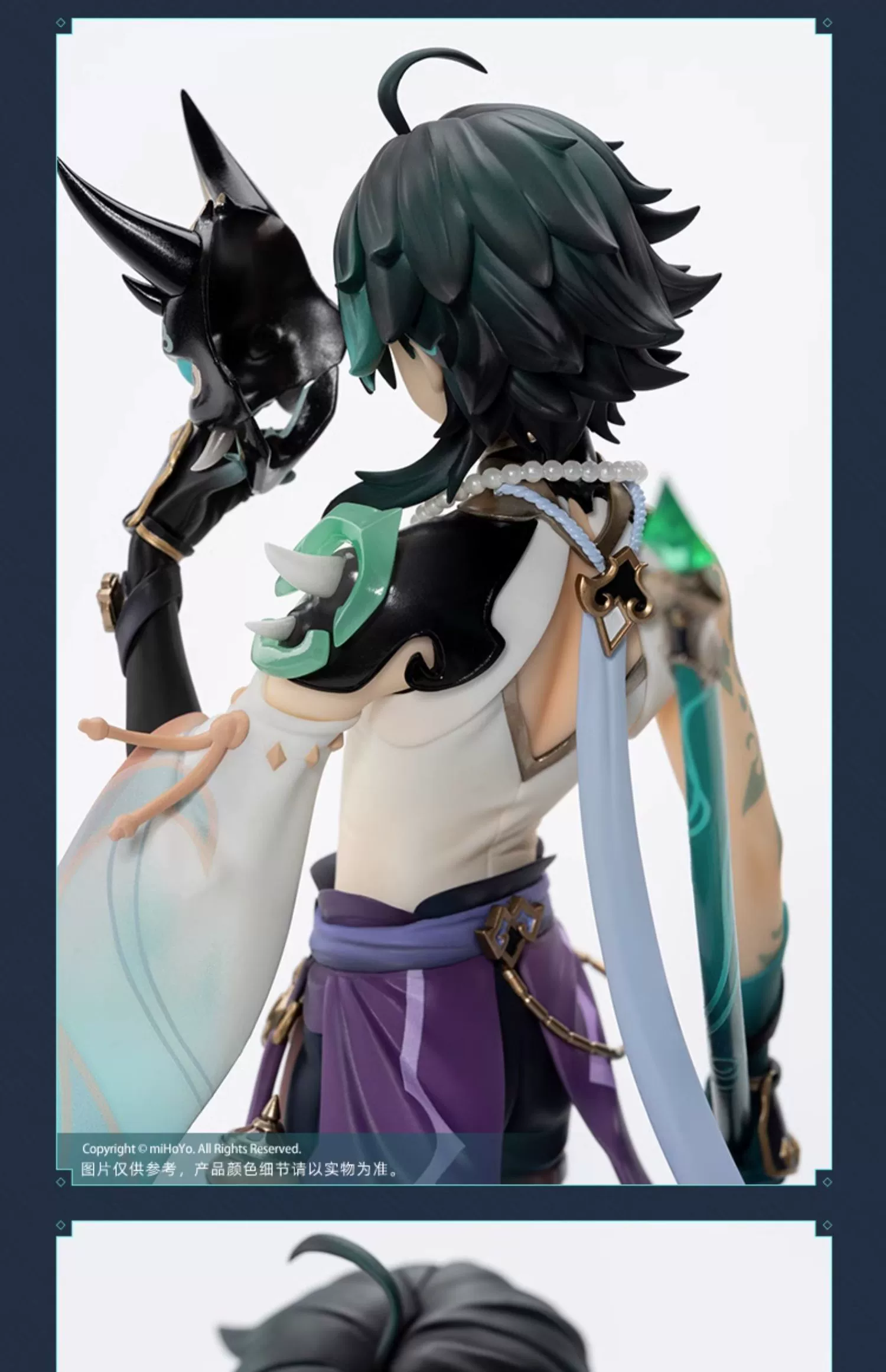 - Diseño inspirado en el juego: La figura presenta a Xiao en una pose dinámica que refleja su determinación y poder en combate. Desde su atuendo detalladamente esculpido hasta su mirada intensa, cada aspecto de la figura está fielmente recreado para capturar la esencia del personaje tal como se ve en el juego.