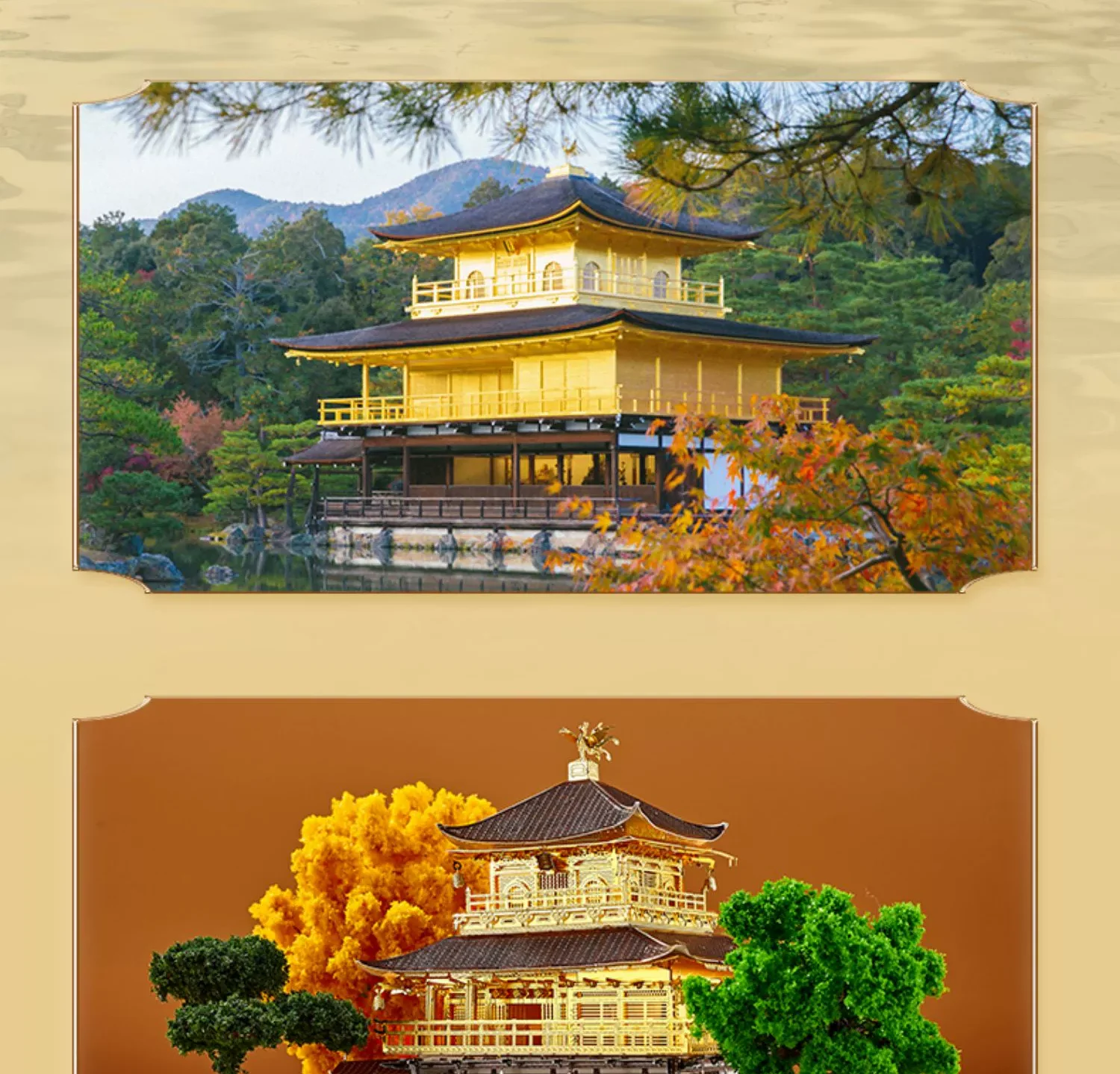 - Detalles auténticos: Con un diseño meticuloso y detalles intrincados, esta maqueta ofrece una representación fiel del Templo Kinkaku-ji, desde sus elaborados techos hasta sus delicados detalles arquitectónicos.