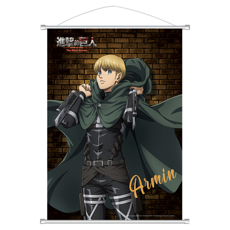 Celebra el épico desenlace de una de las series de anime más icónicas con estos pósteres de tela oficiales de Ataque a los Titanes: The Final Season. Disponibles en cuatro modelos distintos, estos pósteres presentan a los personajes clave de la serie: Eren, Mikasa, Armin y Levi. Cada póster mide 86×60 cm, ofreciendo una calidad de impresión excepcional y detalles vibrantes que capturan la intensidad y emoción de la temporada final. Estos pósteres son un homenaje perfecto al legado de Ataque a los Titanes y una pieza imprescindible para cualquier fanático del anime.