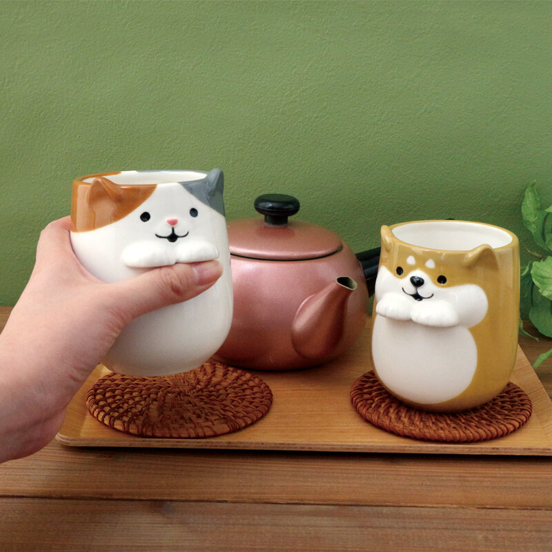 Tazas japonesas de cerámica con diseño de gatito, shibainu y conejo – DECOLE