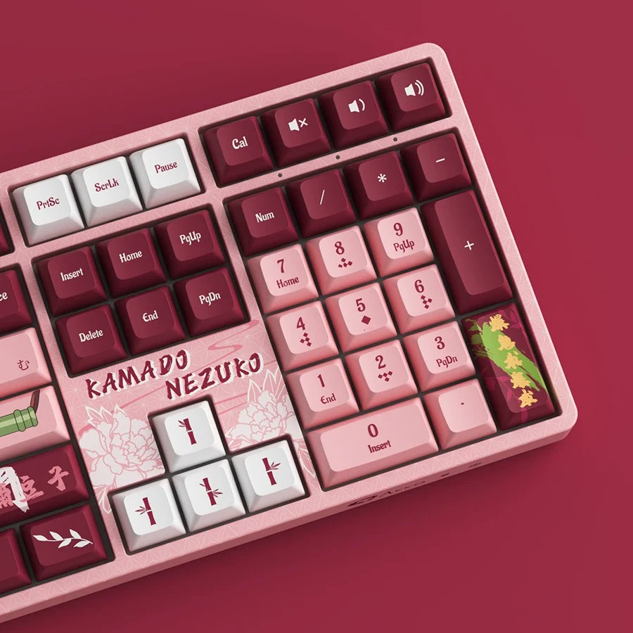 1. Diseño temático: Cada modelo está decorado con elementos inspirados en los personajes de Demon Slayer: Kimetsu no Yaiba. Desde las teclas hasta el diseño general del teclado, cada detalle refleja la esencia del anime.