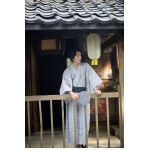 Yukata de hombre azul claro con estampado de rayas – Aokimoto